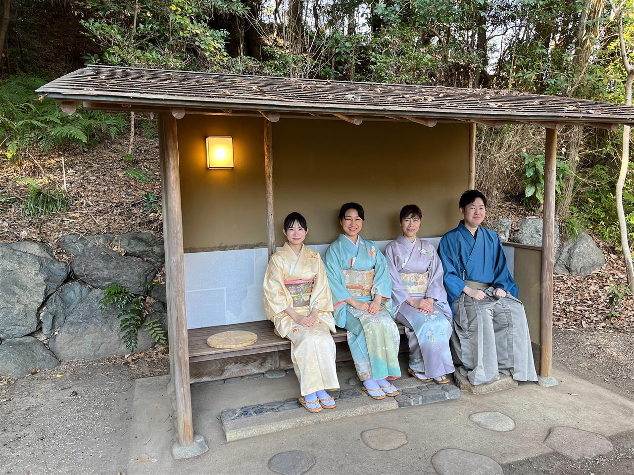 外腰掛けで綺麗にお手入れされた露路を眺め、迎い付けを待ちます。