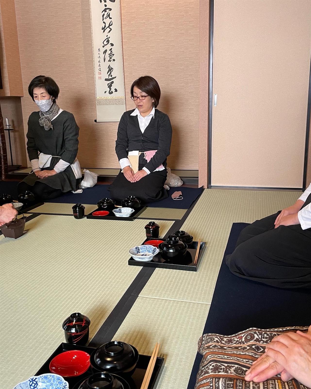 稽古茶事の為の懐石頂き方稽古、ここ数年に入門されたお弟子さん達は茶事が初めての方がほとんど。