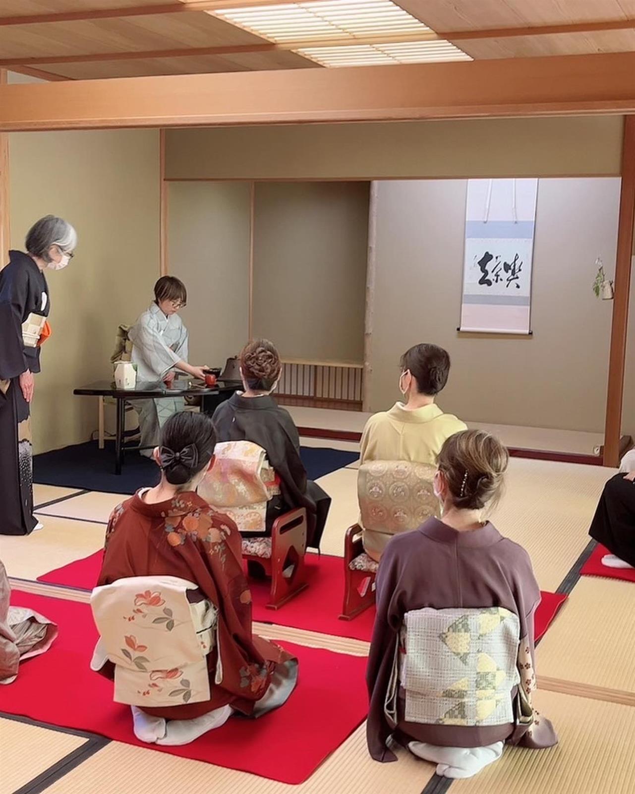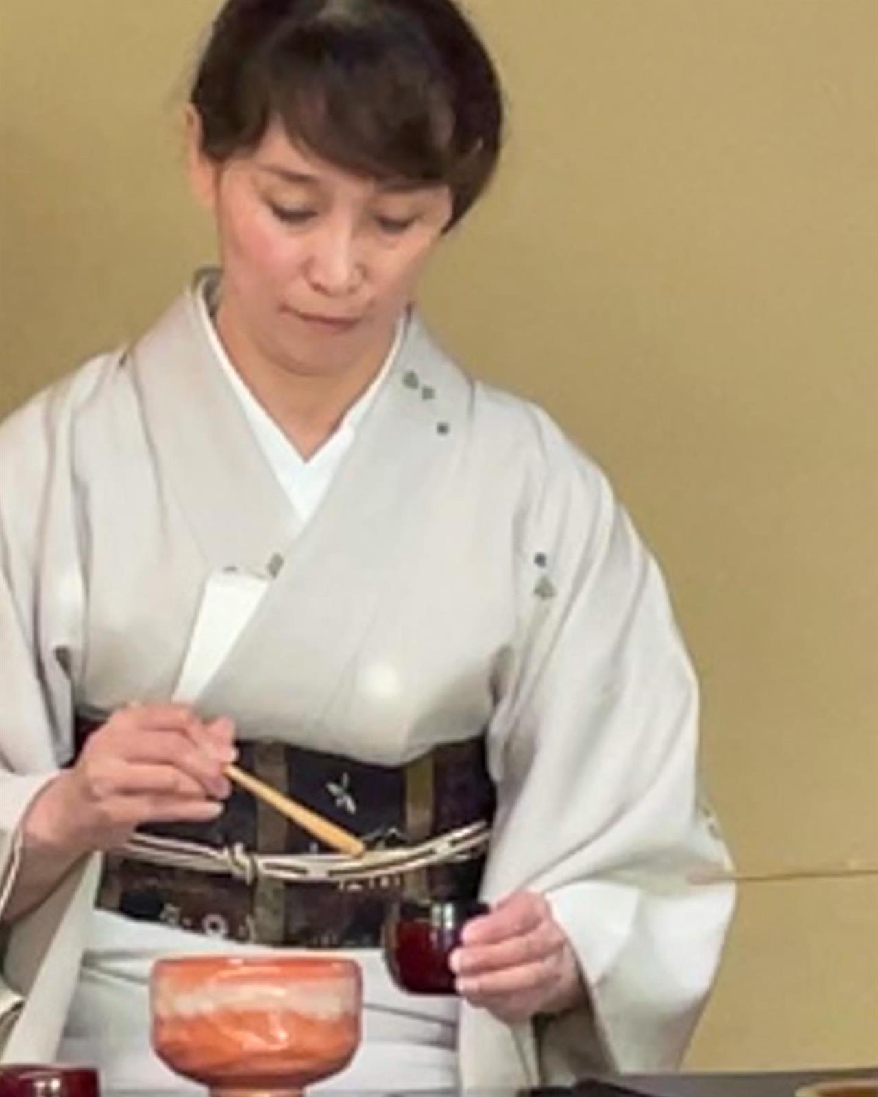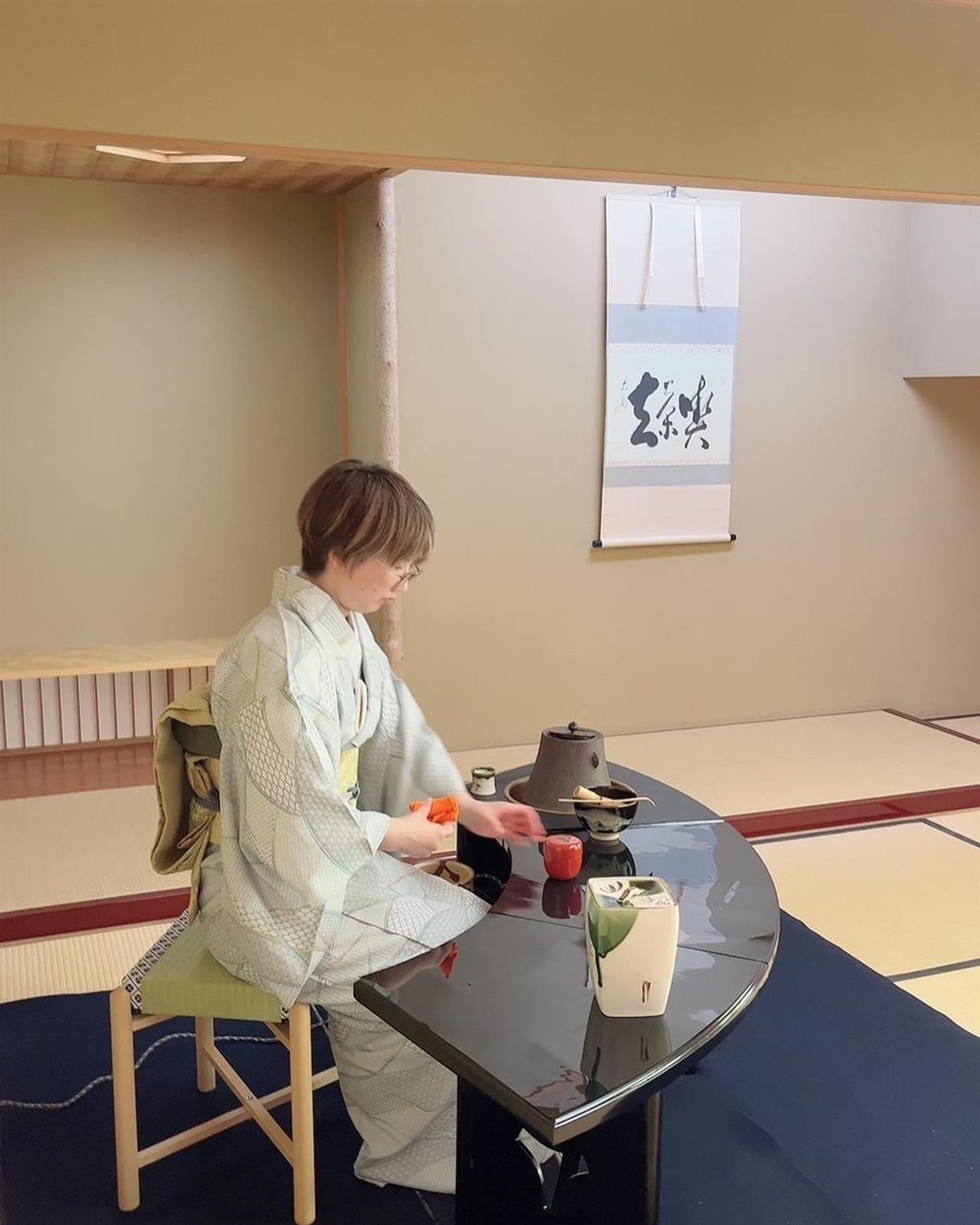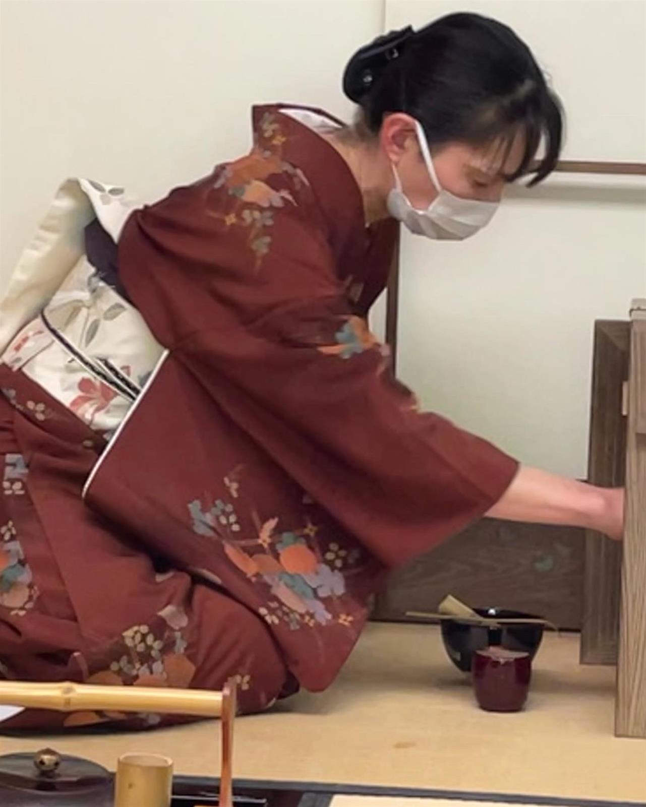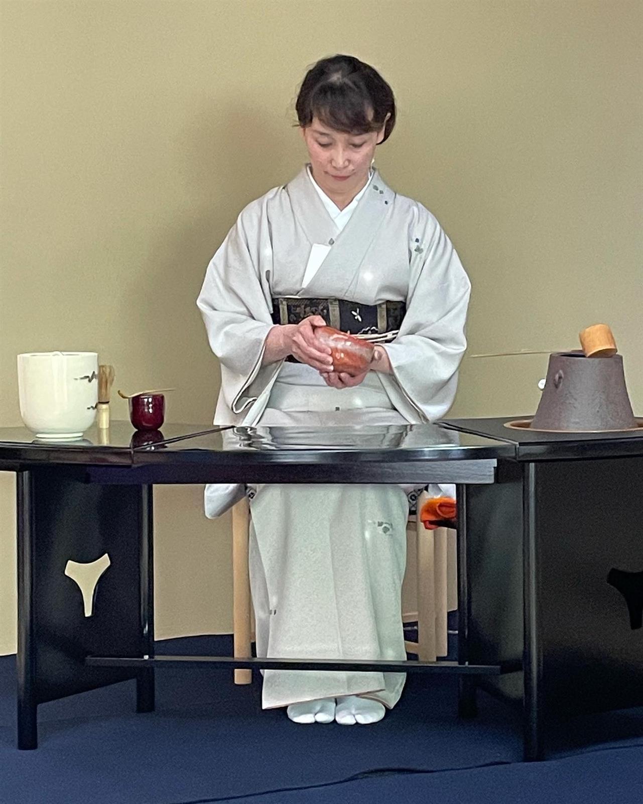 お点前の Sさんは 入門してまだ一年足らずですが、立礼卓のお点前、しっかり覚えて 今日は皆さんに披露です♪♪