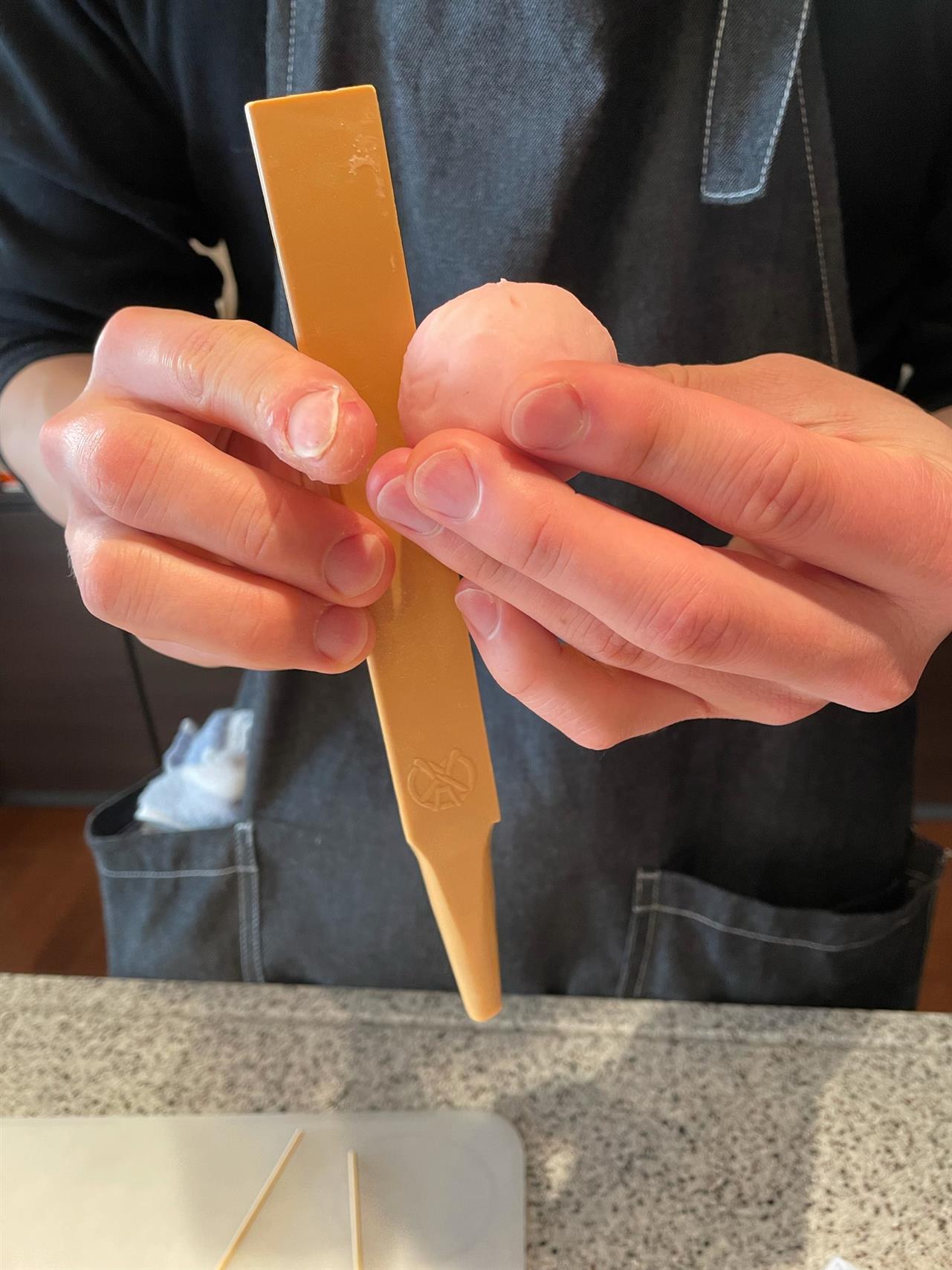 三角棒と人差し指で成形しますが、すぐにコツを掴まれて綺麗に仕上げてくれました。