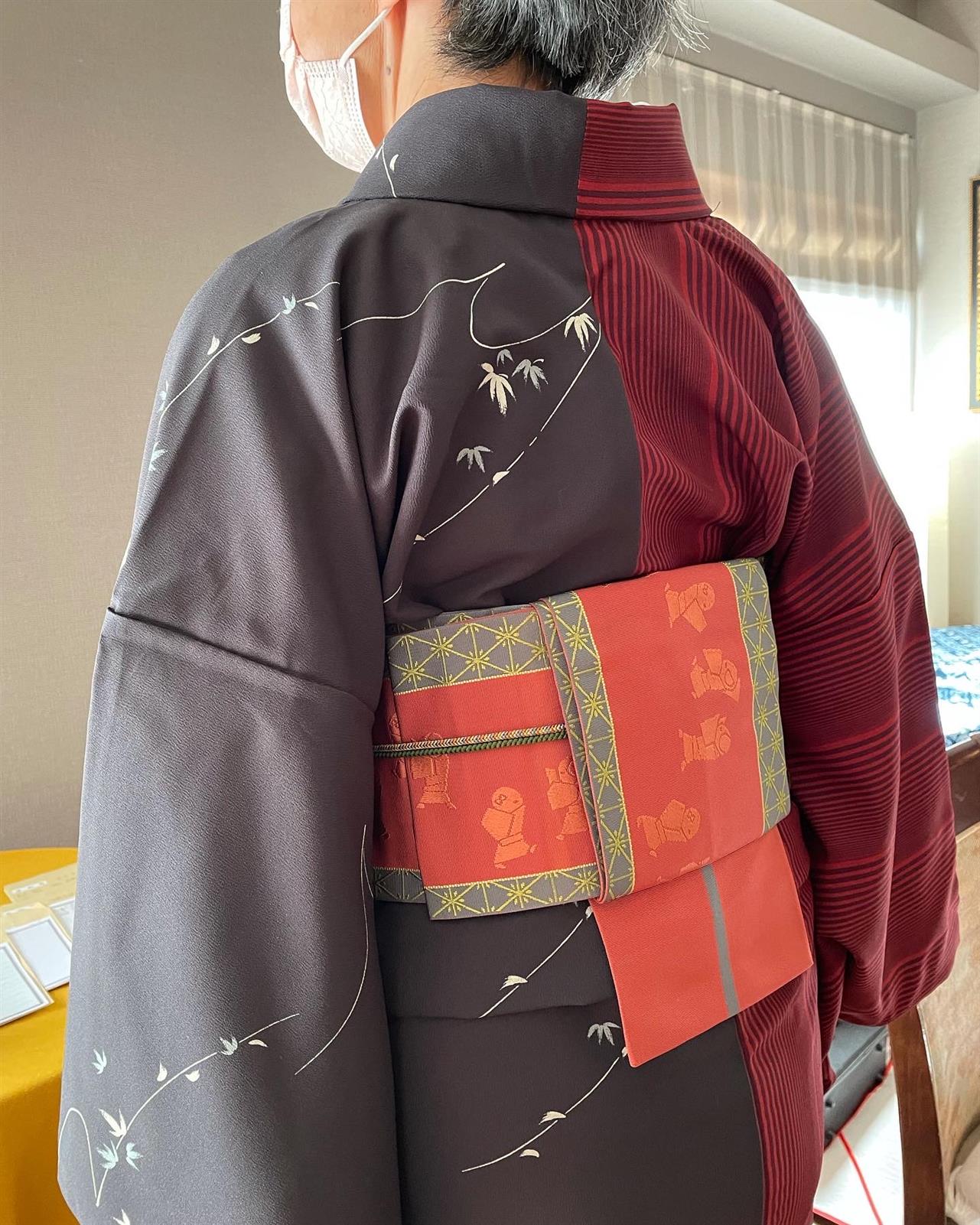 コーデ的には染帯がベターですが、ほっこりした結城の質感は寒い時期にはぴったりだから、合わせちゃいました 笑
