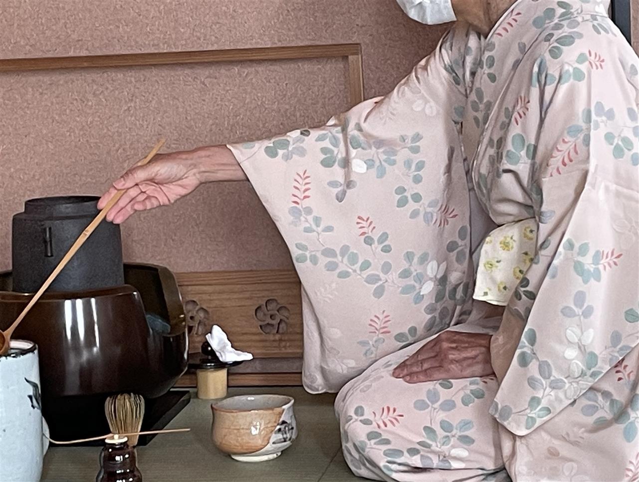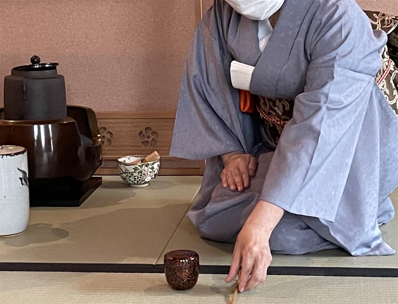 常には亭主(点前)の右側に客が座りますが、左側に座っての点前を逆勝手といいます。