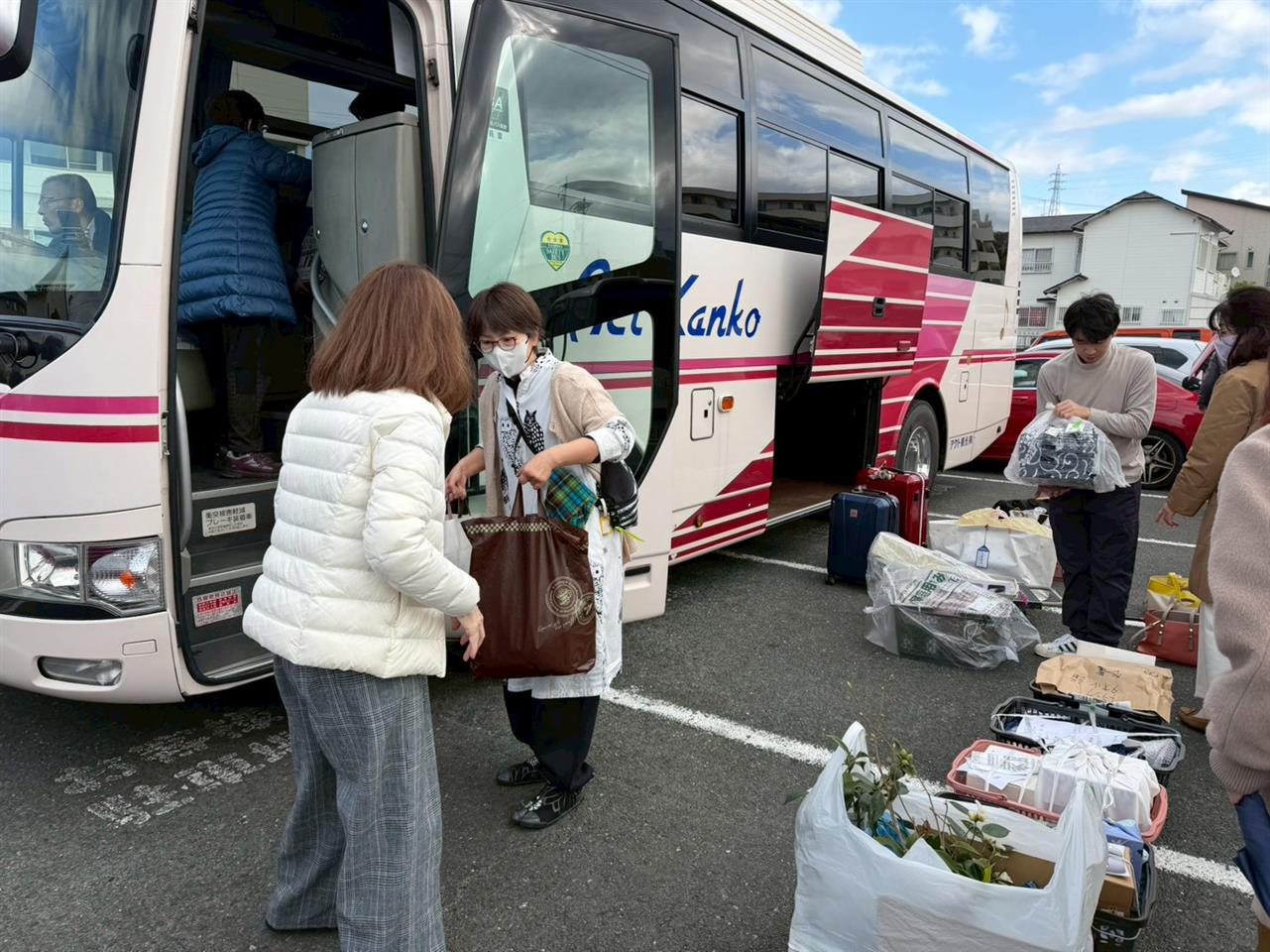 参加するお弟子の皆さんと道具を積んで、チャーターした中型バスで前日に東京に移動。