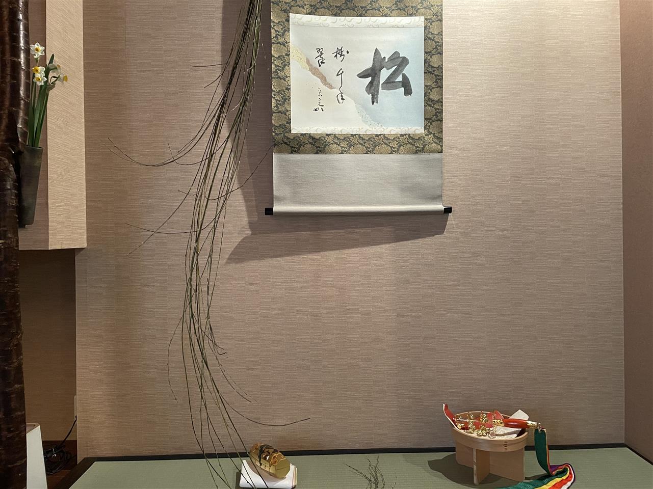宗完宗匠筆の軸を掛けます。